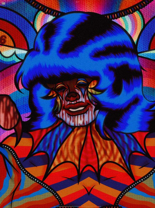 Happy #juneteenth to all my sweethearts out there ! My name is Erwin/GoryCupid and I am a 18yo black surrealist / horror / oc artist , my art is colourful and vintage inspired most of the time 💙❤️💛❤️💙💛