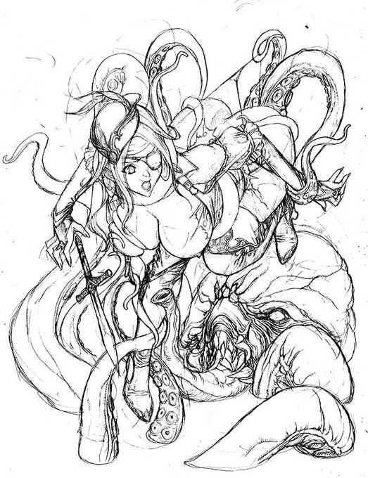 ピクシブにもアップしましたがアンスリウムで連載していますイラストコラム「魔喰ーDEATH GIRLー」来月のキャライラストのラフ先行公開です。次はクラーケンの予定です。