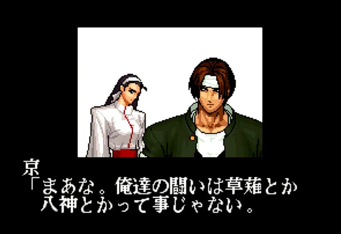 実際のところ、オロチ編で二人共に闘う理由は草薙と八神という家をかけたモノではなく、個人としての闘いであると自覚しているんだよな。庵は95の時点で京を意識していたけど、京もこの時期から個人のプライドをかけた闘いだというのを理解して受け止めていたんだよな。