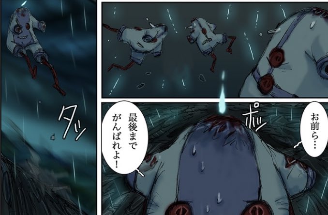 ロンパース五兄弟、自分が雨に当たったとき怖いだろうに助けすら求めずみんなを巻き込まないよう自ら離れて死んでってそれを誰も迷いなく行ってて、ちがう、ちがうだろ!!!!お前らは自分の命が最優先のはずだろ!!!!!やめてくれよたのむからもう 泣いてるんですよ、最後のひとりも、おれも……