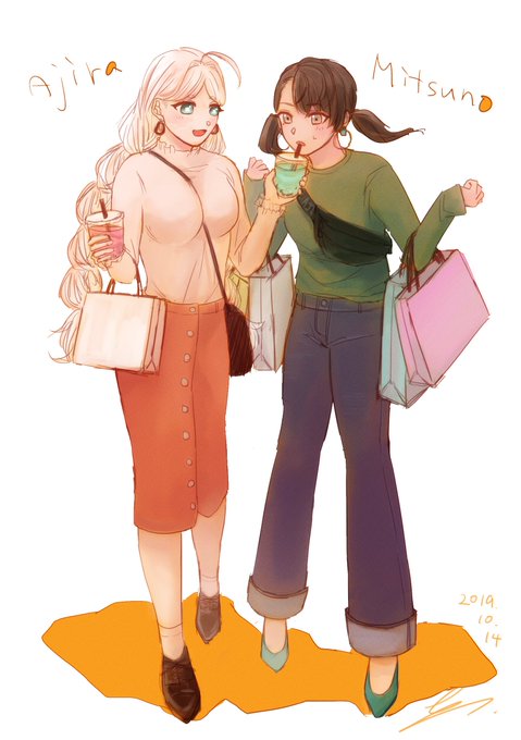 塗りました🎶 いつもと違う適当な塗り方したらわけわかんなくなった🎶 #みつあじ #創作百合
