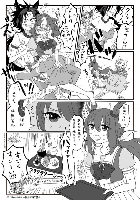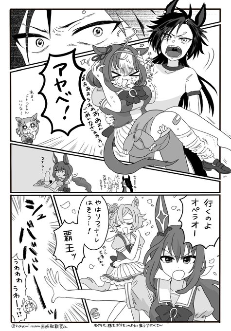 アヤベさんとシャカールはなかよし? オールキャラギャグ漫画8ページ(1/3) 途中で突然ドトオペが始まります。 公式程度の描写しかないです。 #ウマ娘
