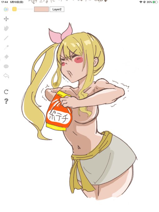 落書きー 出れなくなったナツと ポテチ開けてくれないと服を返してもらえないルーシィ