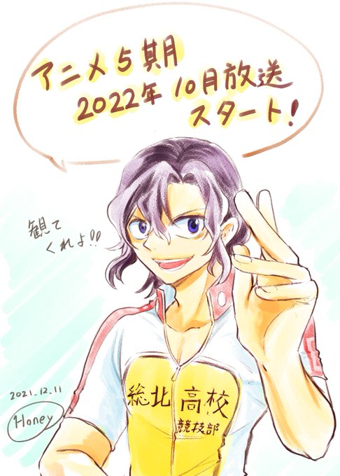お絵かき1枚目 アミダで決まった『弱虫ペダル』より手嶋さん アニメ宣伝つきというお題です☺️