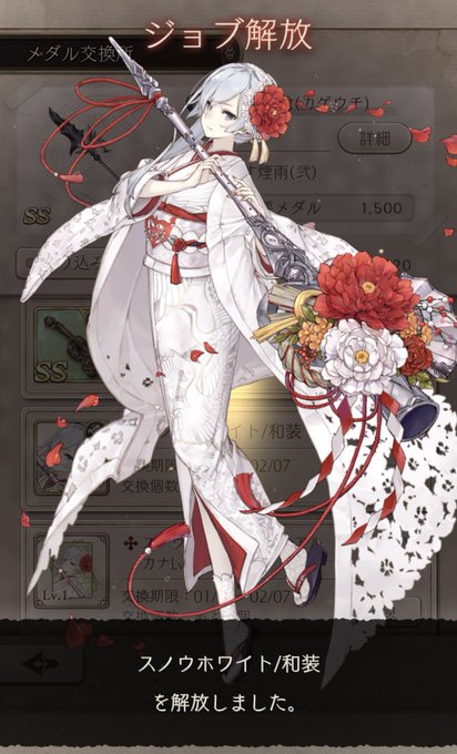 悩んだ結果スノウにしました。 ずきんちゃんと人魚姫のジョブ来なかった、、