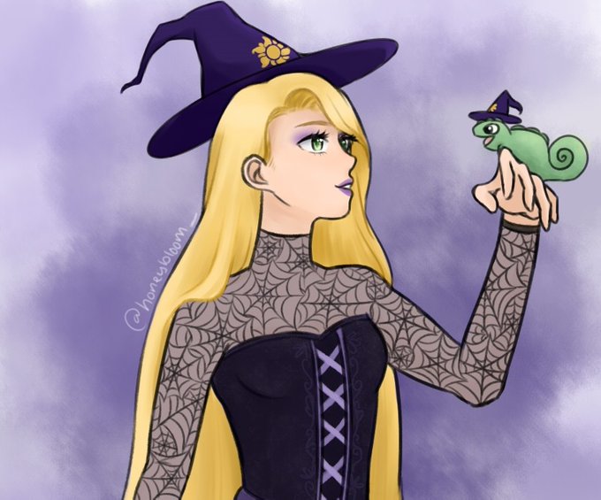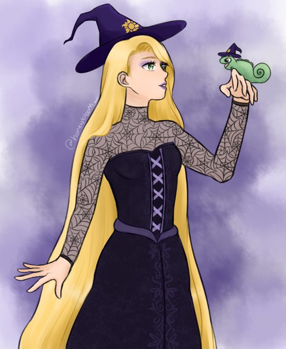 witch!rapunzel and her trusty familiar! 🎃🕸️🖤✨
