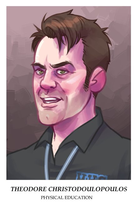 Two more teachers from that vampire story I’m working on! Ian is a very kind, & VERY patient guidance counselor at MHS. Ted “Teddy” Christodoulopoulos teaches gym alongside his bff Amelia & can often be described as a bit of a loud-mouth grouch.