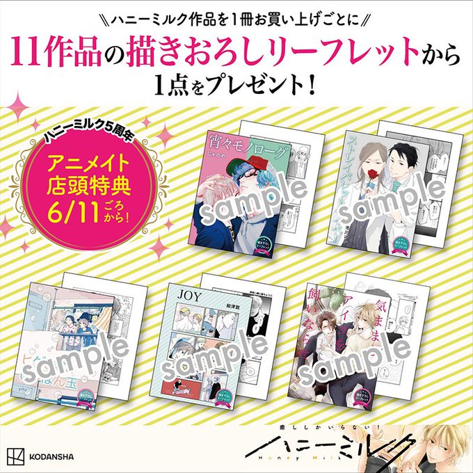 全国のアニメイト(@animateinfo)さんでハニーミルク5周年企画が11日頃からスタート💙