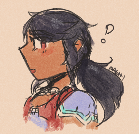 i have to draw melia w her hair up more bcs if i keep drawing her with her hair down she's like, barely recognizable to ppl not familiar w how i draw melia i think :(