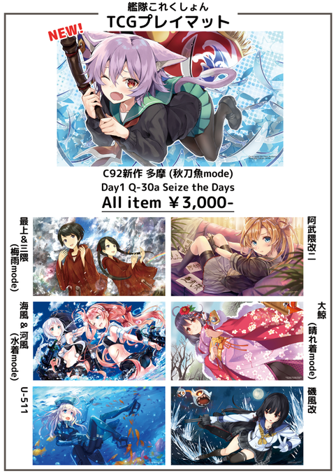 U-511、江風&海風、阿武隈改二のプレイマット3種を極少数置かせて頂きます。