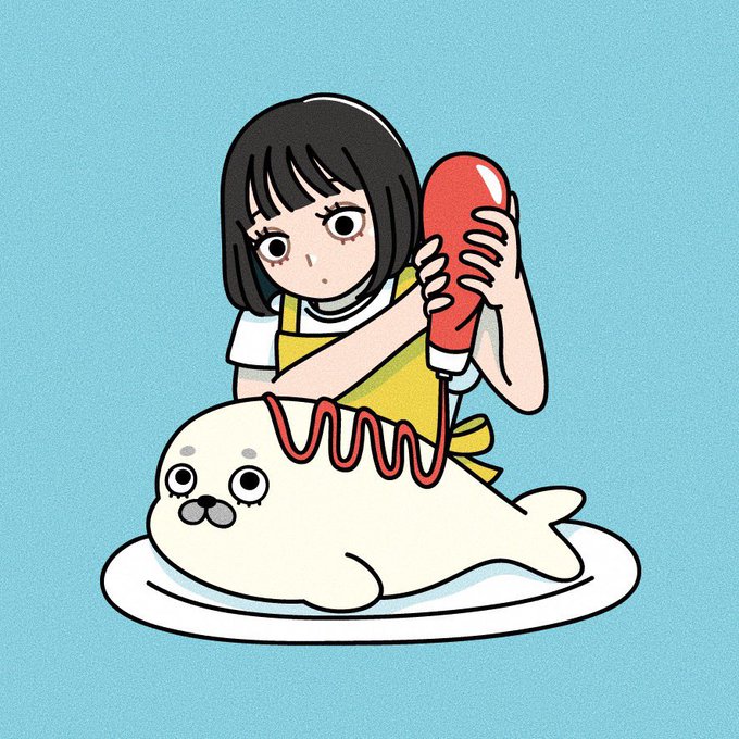 #今月描いた絵を晒そう 水色☁️🐬☔️