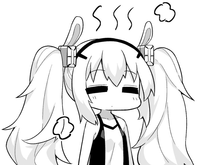 見切れてない寝そべりブレマートン(湯気キラオンオフ)と、ぽかぽかラフィーちゃんです。 #アズ4 #びそくぜんしんっ #アズールレーン