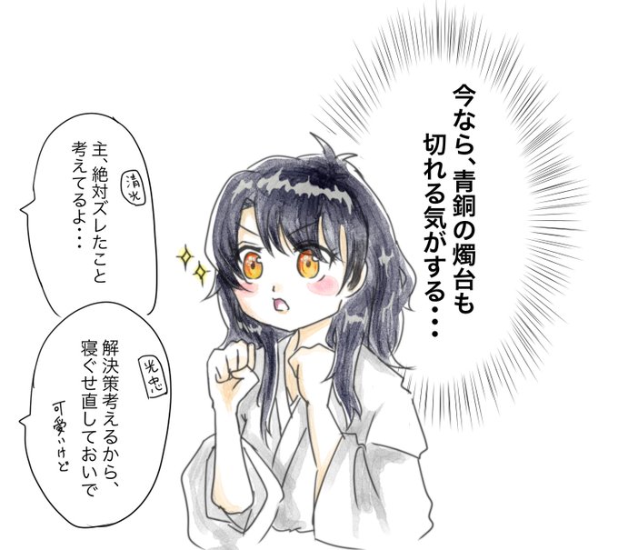 光忠は朝見た瞬間ギョッとして、他に主の体に異変がないかとかめっちゃ心配してから、同じ色に染まった彼女を見て(…悪くないな)って内心めっちゃ喜びそう。