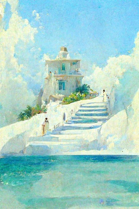 海と階段 なぜか無性に好きなテーマ。できればタップして見てほしい。 #midjourney