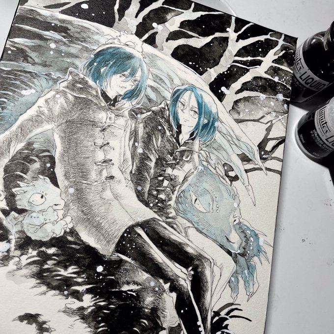 「双子の彼らの休日はいつもドラゴンと一緒だった。冬が来ると、みんなであつまってぬくもりを分かち合う。たわいのない休日の風景は当たり前のようで、とても一瞬の時間。」 https://t.co/loPyO2cdki