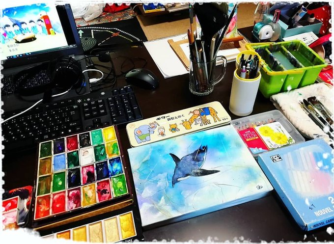 使用画材:顔彩、色鉛筆、パステル