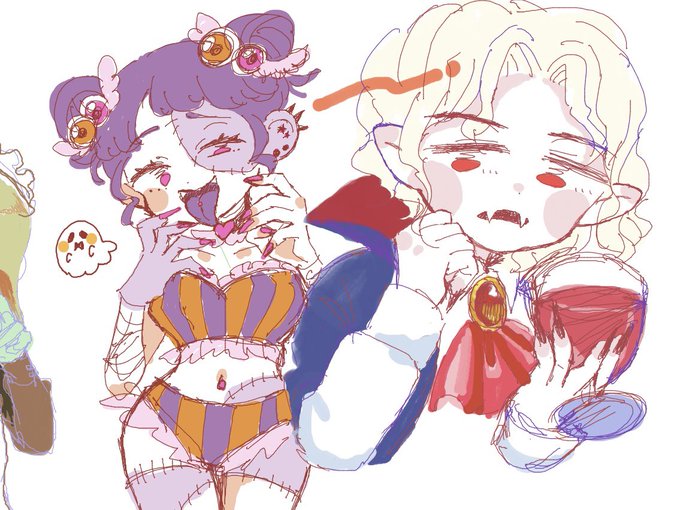 キャスで描いたバンパイアとゾンビガールです💖やっと絵チャでも絵が描けるようになってきたから楽しい🥺💖 #ハロウィンイラスト #ハロウィンイラスト展示会2021
