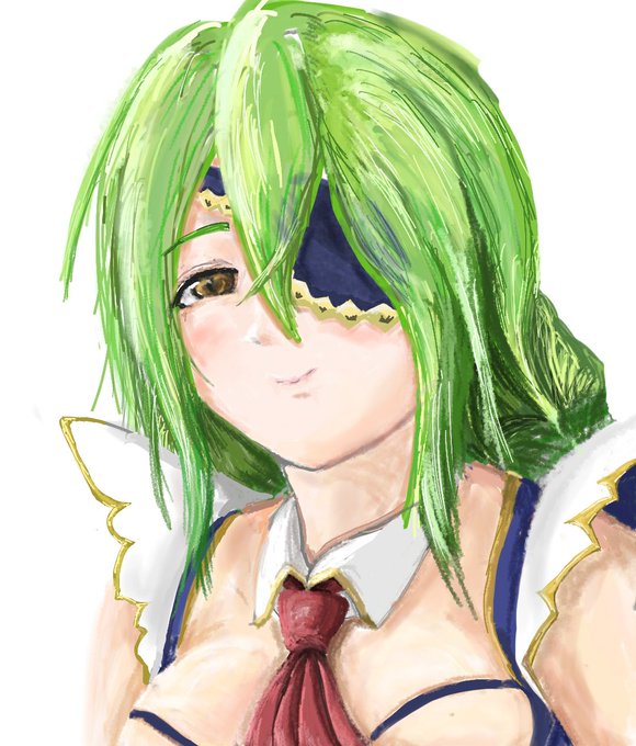 右肩装飾 目の調整(泥沼) 3枚目がツイッターで上げたもの 4枚目が色々調整したもの。ヘッドドレスはなんやかんやありまして、色々まぁまぁ… 自分の絵でも、変化していく過程は見ていて楽しいと感じます。