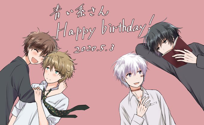 @aoikei_sora 青い系さんお誕生日おめでとうございます!🎉ささやかですが、みどちあとN●.6の2人を押しつけさせてください🙏青い系さん時空のネコちゃんネクタイを想像の色で勝手にお借りしましたすいません!素敵な1年になりますように🙏✨
