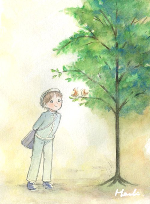 小さな郵便屋さんと小鳥🐤 #illustration #watercolor