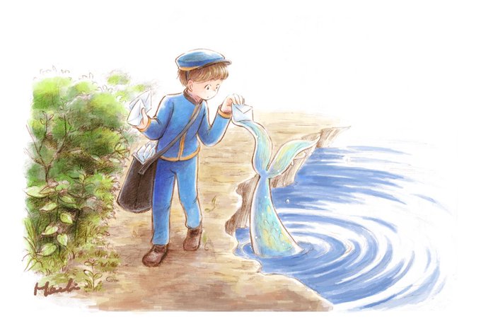 小さな郵便屋さんと…🐟️? #illustration