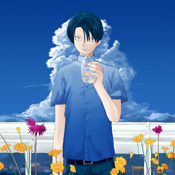 にこさん(@2525_ieeei) 厚くんと薬研が朝の海に行く本 遅くなってしまってすみませんでした…! #リプくれた方の同人誌の表紙構図を勝手にラフ描いて考える