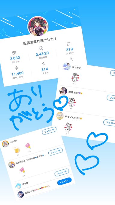 配信時間も少なくなっちゃったのに、こうしてみんな来てくれて嬉しい🥺💕