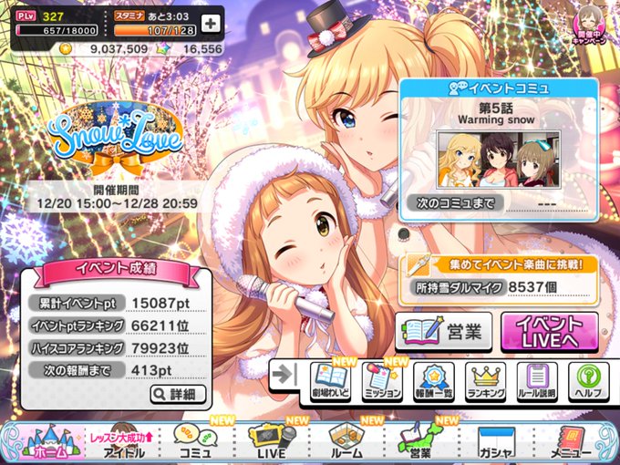 実質FES限💪💪💪 上げられるパラはとにかく全部上げる😤 TLで見かけたスマホ雪歩さんをコラしたコミュのスクショって新規SRのだったんだねw というかミリシタCDで実装知ったよ笑