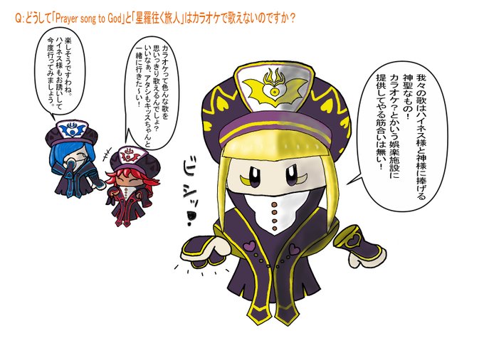 (帽子の模様を描き忘れていたので再投稿) 「銀河に名立たるハルトマン」がカラオケで歌えるなら、「Prayer song to God」と「星羅往く旅人」もあればいいのになあ。終盤のネタバレになるからダメなんですかねえ。 #星のカービィスターアライズ