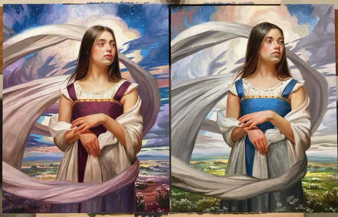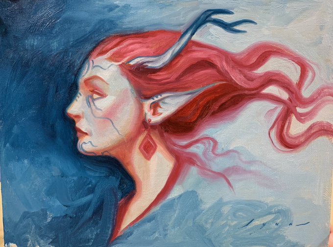 My painting "Ella Standing Between the Earth and Sky” was accepted into the 28th annual national show for @OilPaintAmerica ! Here is the final, the head study, and two color studies.