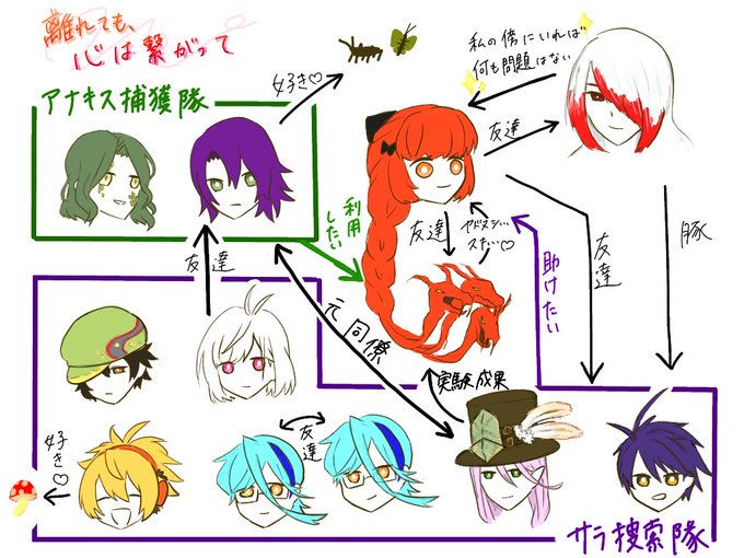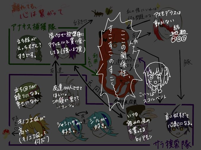 メギド、離心繋イベの雑相関図と雑感想らくがき
