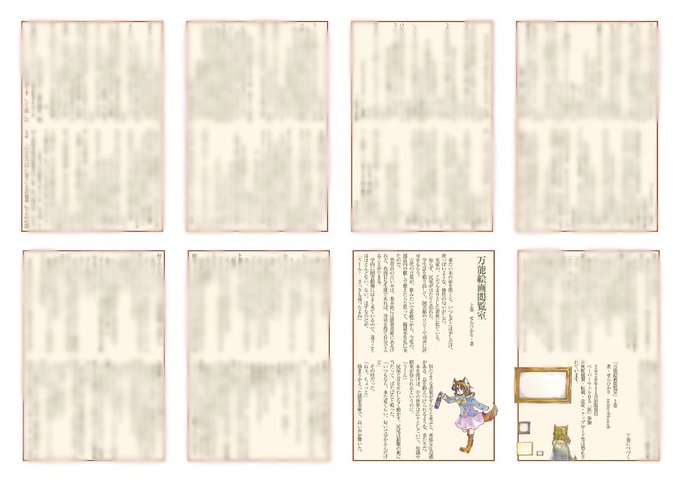 「万能絵画閲覧室」Word→pdf→面付けで作成(多分…)。A3で2枚、カラー200円