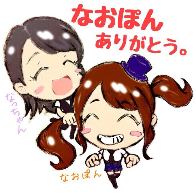 なおぽん卒業おめでとう。 舞台女優さんとしての活躍楽しみにしてます。ひとまずお疲れさまでした! 劇場に行けなかったから仕事の合間に描いた。なっちゃんと遊んでくれてありがとう笑 #HKT48 #岡本尚子卒業