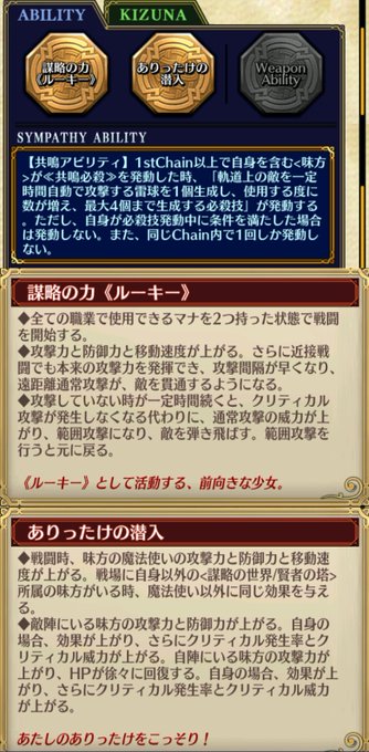 謀略の世界《ルーキー》アリーチェは、4部仕様の突武器、謀略所属、バトル所属:賢者の支援と火力の魔法使い。 近接、貫通、領域バフ、条件付き全体結束とさらに結束。共鳴はファンネル。 範囲とファンネルで火力は幻獣クロテッドより上。 領域は狭い(3:3)のと、いろいろ出てきます。 #チェンクロ