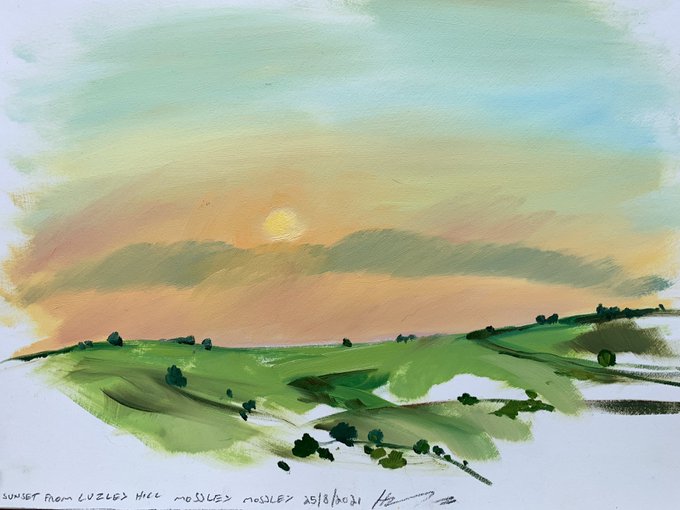 For the last couple of nights I have been doing quick Plein air oil sketches of the sunset lovely colours from sunset to Twilight how do you capture your Sunset.@GalleryOldham @gallerycheshire #sunset #pleinairpainting