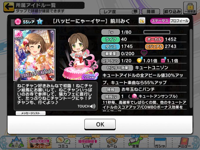 30連してみくにゃんしか来ませんでした。お嬢くださいお嬢。あと今日の無料でセリカちゃんきました