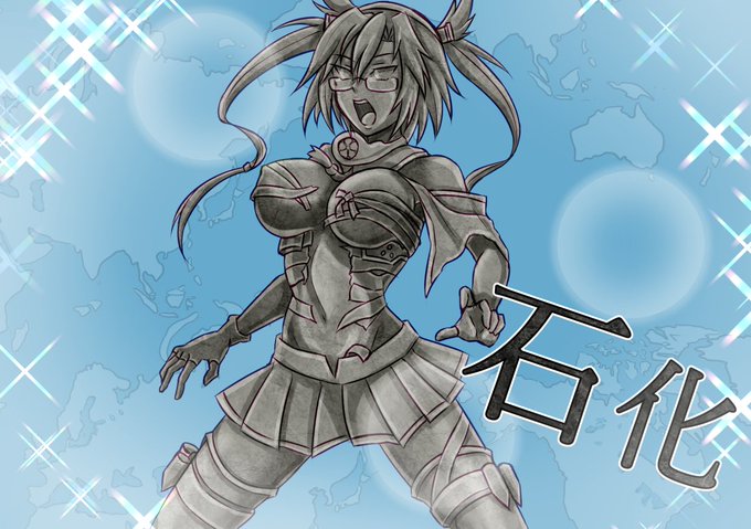 ※女性キャラ石化絵 リクエストをいただいて書いた武蔵さんの石化です。 ゲーム画面風に…というご要望で、ゲーム画面の画像を真似してちょっとそれっぽいのを作ってみましたがこういうのいいですよね。 リクエストありがとうございました。