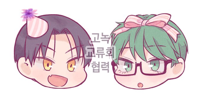 韓国の高緑イベントに協力したイラストその3。お誕生日の高尾と自発的プレゼントになった真ちゃん🥳🎀