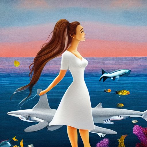 『深海に迷い込んだ少女と、彼女を救うサメの怪物』で描いてもらったらめちゃくちゃどタイプな絵が完成した🥺🥺