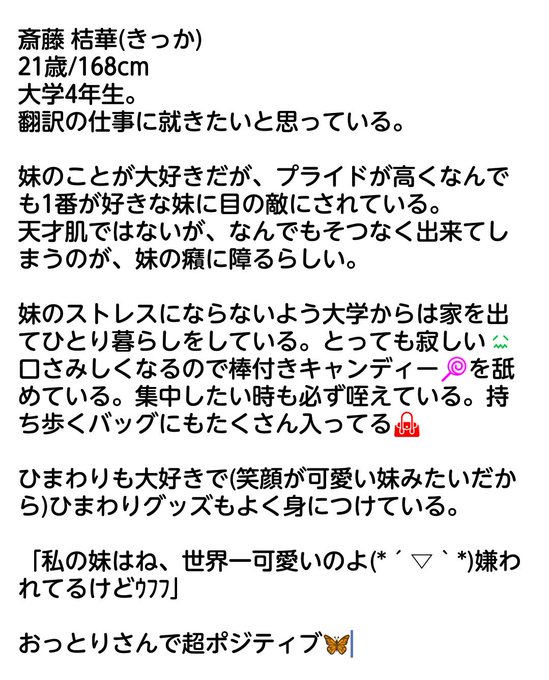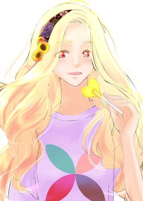 @sousakuTL ありがとうございました!(*´ω`*) 伊達メガネ ひまわりが好き 棒付きキャンディーが好き 明るい色のロングヘアー ふわふわのロングヘアー