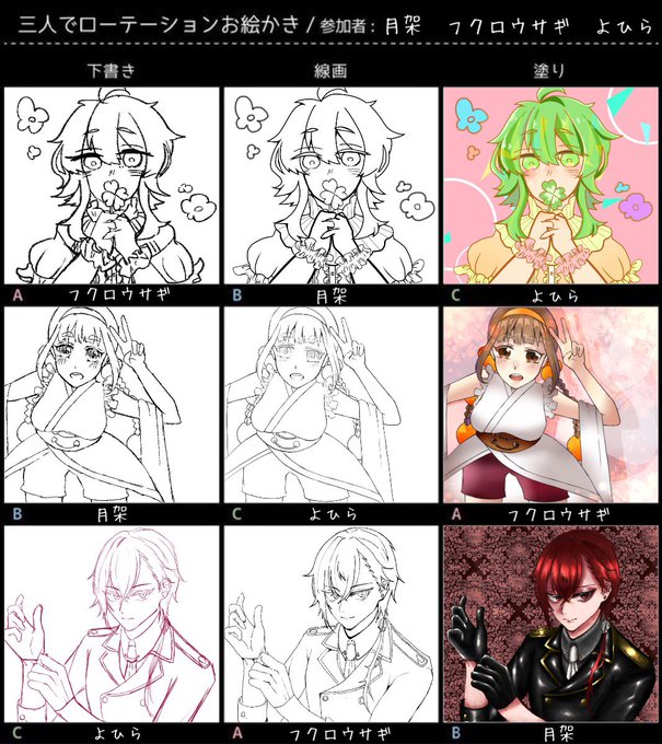 月架ちゃん(@katudonnkueyo)とよひらちゃん(@yohira0603)と私の3人でローテーションお絵描きしました🥰