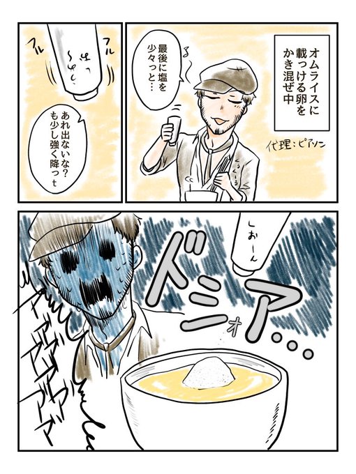 昨日の実録(代理:ピアソン) 優しい卵の周りを海で囲って塩攻めした味がしました(ギリ美味しく頂きました) 3枚目は実際に作ったやつです