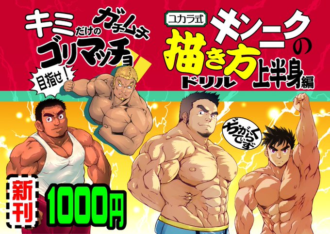 【 #C104 新刊情報】 『 #ユカラ式キンニクの描き方 ドリル 上半身編』 これまで刊行した2冊の内容に加えて 『腹筋』『背中』を追加 上半身編としてまとめました! サイズもA5→B5に拡大!! ☆以前の『胸・肩編』 または『腕・手編』を お持ちの方は半額500円! お申し出ください😊