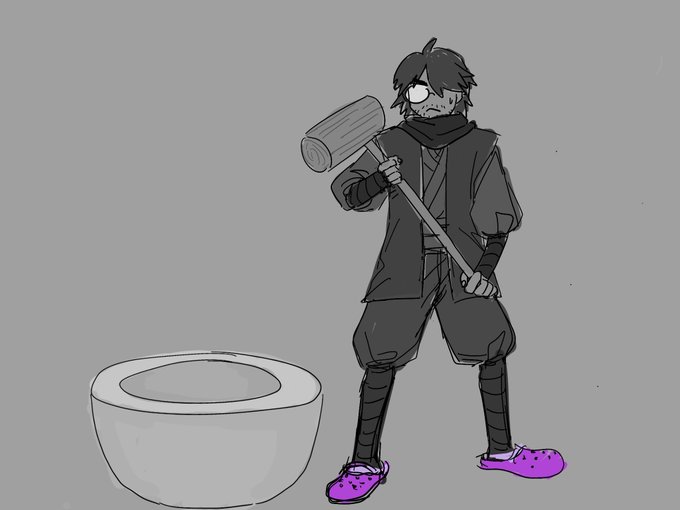 起因是一張藤岡靛先生的照片。 🐛「這人穿的什麼鞋?」 🍪「山村打年糕恭賀新年(錯亂)」 🐛「你立刻畫」 最後是🐛畫了。(對不起靛さん和ヤマムラさん🙇