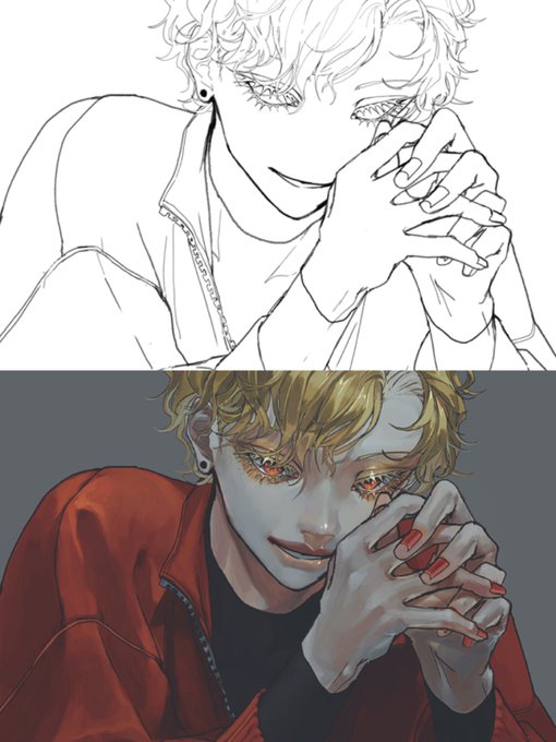#皆さん線画と塗った後を見せてください 鼻描いてるんだけど塗ってるうちに消しちゃうし白目剥かせる 線画密度高いやつは気合入れて頑張りたいとき