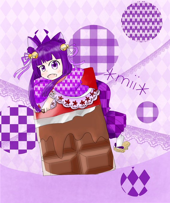 @takutti0214 いつも動画制作お疲れ様です! チョコ系のお菓子が好きとおっしゃってたのでチョコレートに乗っかるみぃさん描かせていただきました。