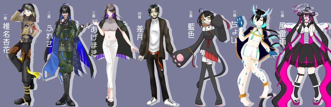 藍色さん[@aiiro_lemon]の誰デザ参加させて頂きました! 私が描かせていただいたのは2番の子です! リプ欄にアンケートを設置するので良ければ私が何番の子デザインしたのか予想してみてください~!!!