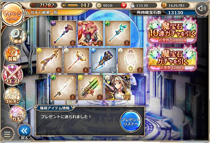 石コイン130連。 キャラが引けない!引けないけど…!全部吹っ飛ばす神引きじゃ! #神姫project