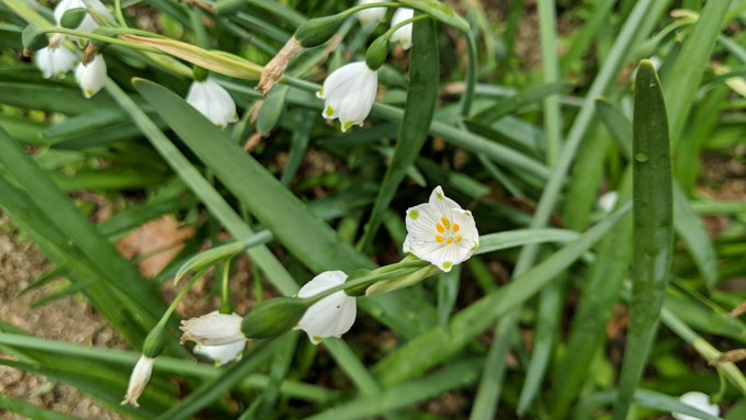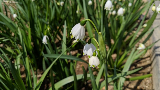 スノーフレークちゃん!スズランスイセンっていう別名もあるよ!もう開花時期は終わりだけど、ところによってはまだ残ってるかな?よく葉の部分を結んでいる所もあるね!わりと放置しても育つから、球根初心者さん向けの娘でもあるよ!10月頃に挑戦してみてね!