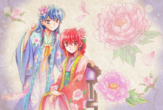 #暁のヨナFA #暁のヨナ #花とゆめ ヨナ姫とリリ様。ヨナ姫にとっては、初めての同性の親友になるのかな?また華やかなツーショットが観たいです!